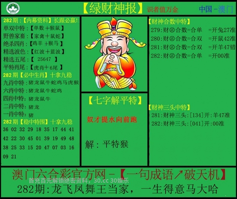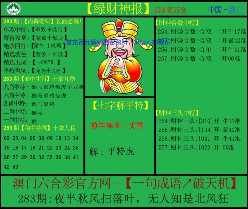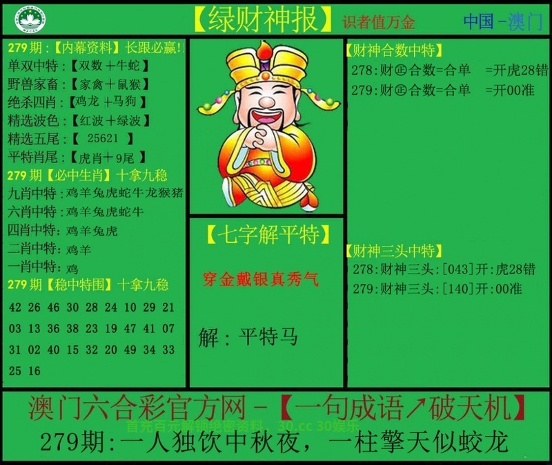 284期:初沫柒柒【平特★二肖】恭喜发财